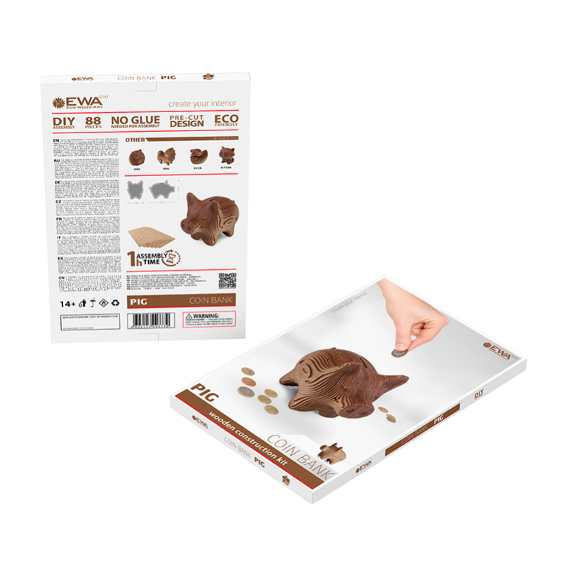 Kit de madera EWA Hucha: Cerdo 88 piezas